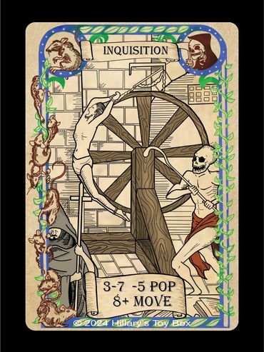 Optional Rule:1) If the Knights Templar are in play when the Inquisition card is played or moved, the Target must be the player that has the Knights Templar in play.