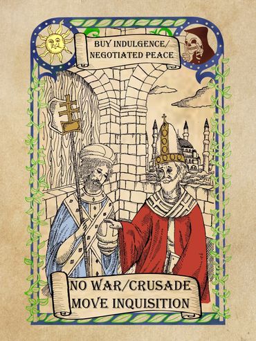 If played in response to a War card, the Pope may be played any time before die are rolled. When played, immediately discard the War card and any Tactical Advantages in play.