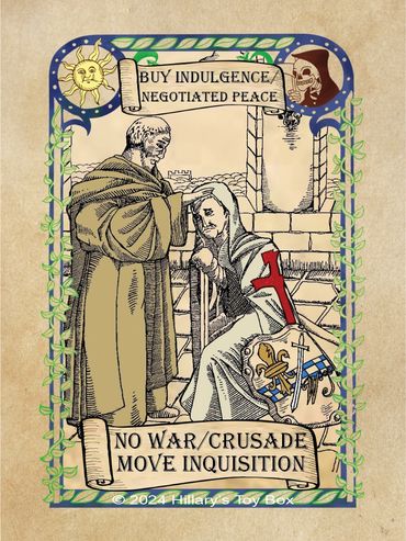 All of the cards included in Of Popes & Plagues along with explanation of play and FAQ for each card or card type.