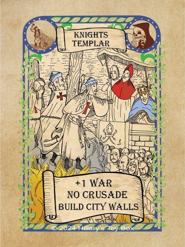 At the beginning of the game, the Knights Templar are included in the Draw Pile and are an played from the Active Player's hand like a Playing card.