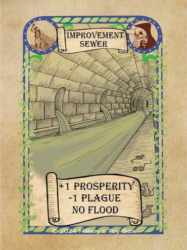 A player with a Sewer card in play will gain a plus one (+1) modifier to a Prosperity Roll and a minus one (-1) modifier to a Plague Roll.
